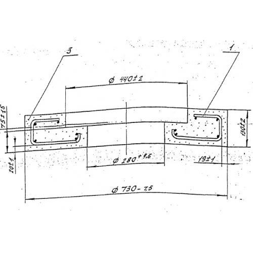 Подушка КИП относится к унифицированным строительным материалам. По внешнему виду изделие представлено круглой формы высотой 130 мм. В центральной части предусмотрено сквозное отверстие двухступенчатой конструкции. Максимальный диаметр отверстия составляет 440 мм, минимальный 220 мм.