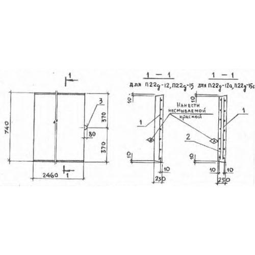 Плиты перекрытия лотков П 22д-12 а имеют габаритные размеры 740х2460х250 , где: указывается длина, ширина и высота, а также порядковый номер размерной группы, расчетная нагрузка. Геометрический объем данного изделия составляет 0,4551 , объем бетона - 0,46 . Общий вес изделия 1140 . Все обозначения наносят специальной краской на боковую грань плиты.