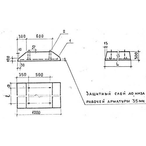Длина ленточной плиты ФЛ 12-12-4 составляет 1180 , ширина – 1200 , 300 – высота. Геометрический объем составляет 0,4248 , объем бетона на одно изделие – 0,348 , масса – 870 .